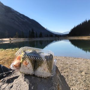 雄大な自然の中で食べるお弁当のおにぎり、手作りケーキもとても美味しかったです。