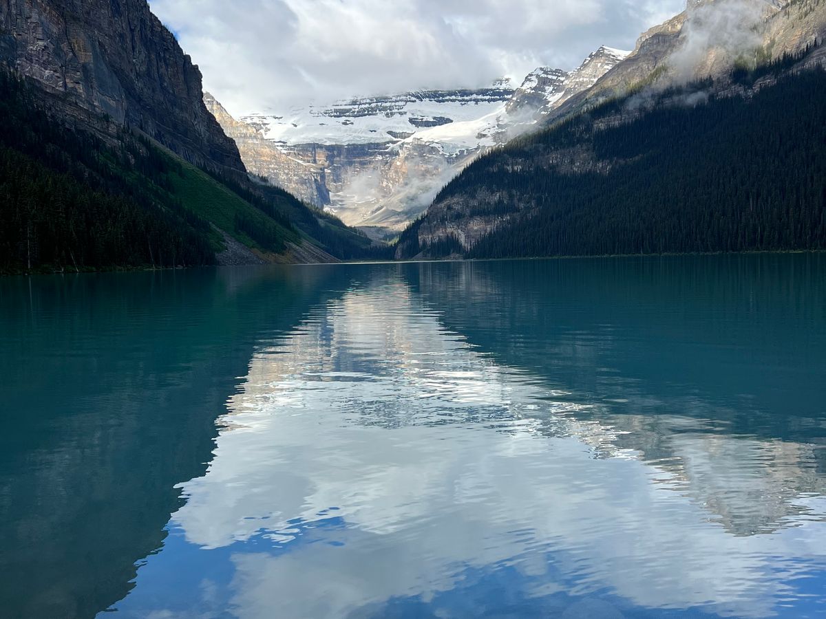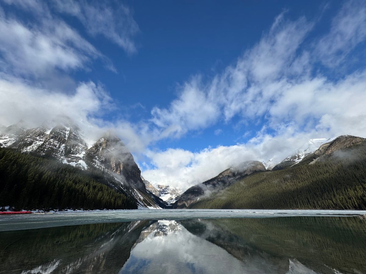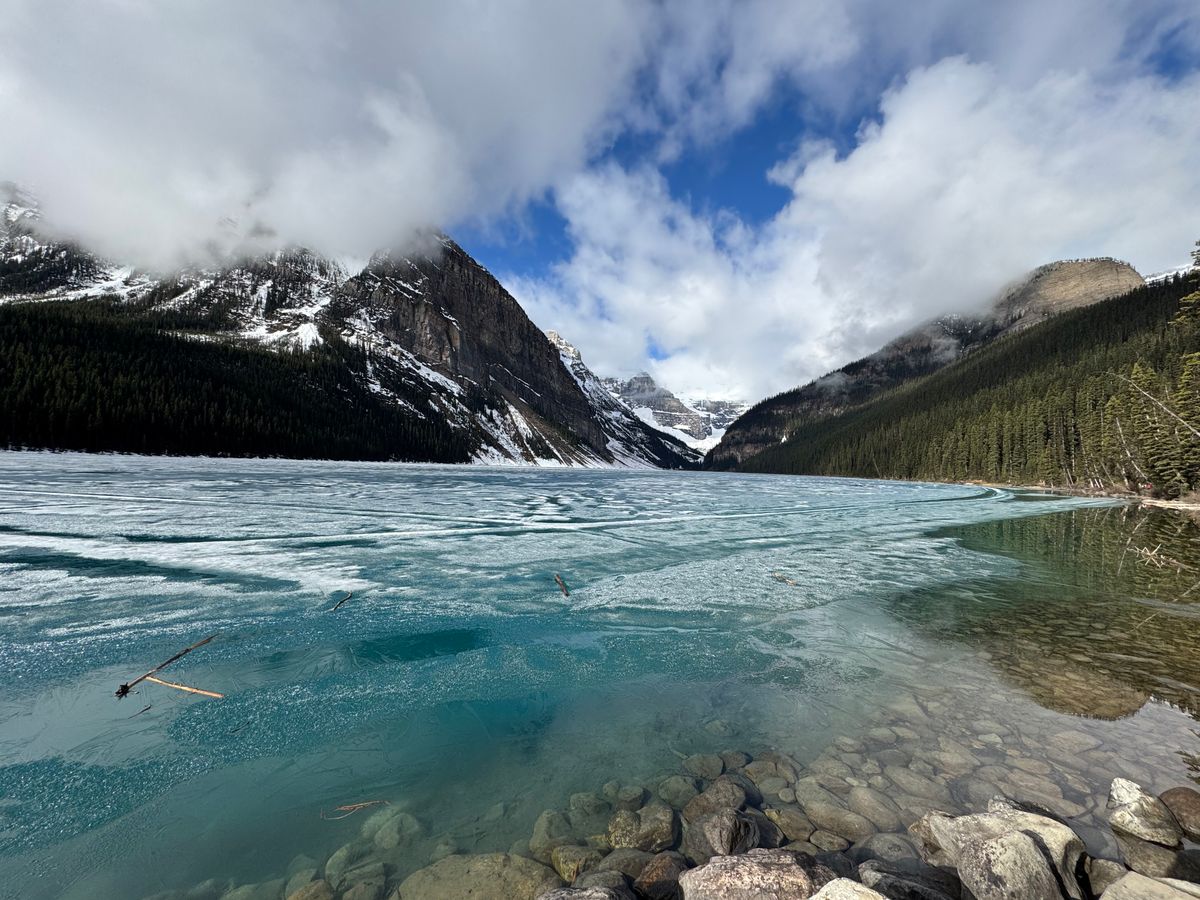 レイクルイーズやエメラルドレイク、雪が残る山々や凍った湖、そして初めてご覧になった氷河の青など、