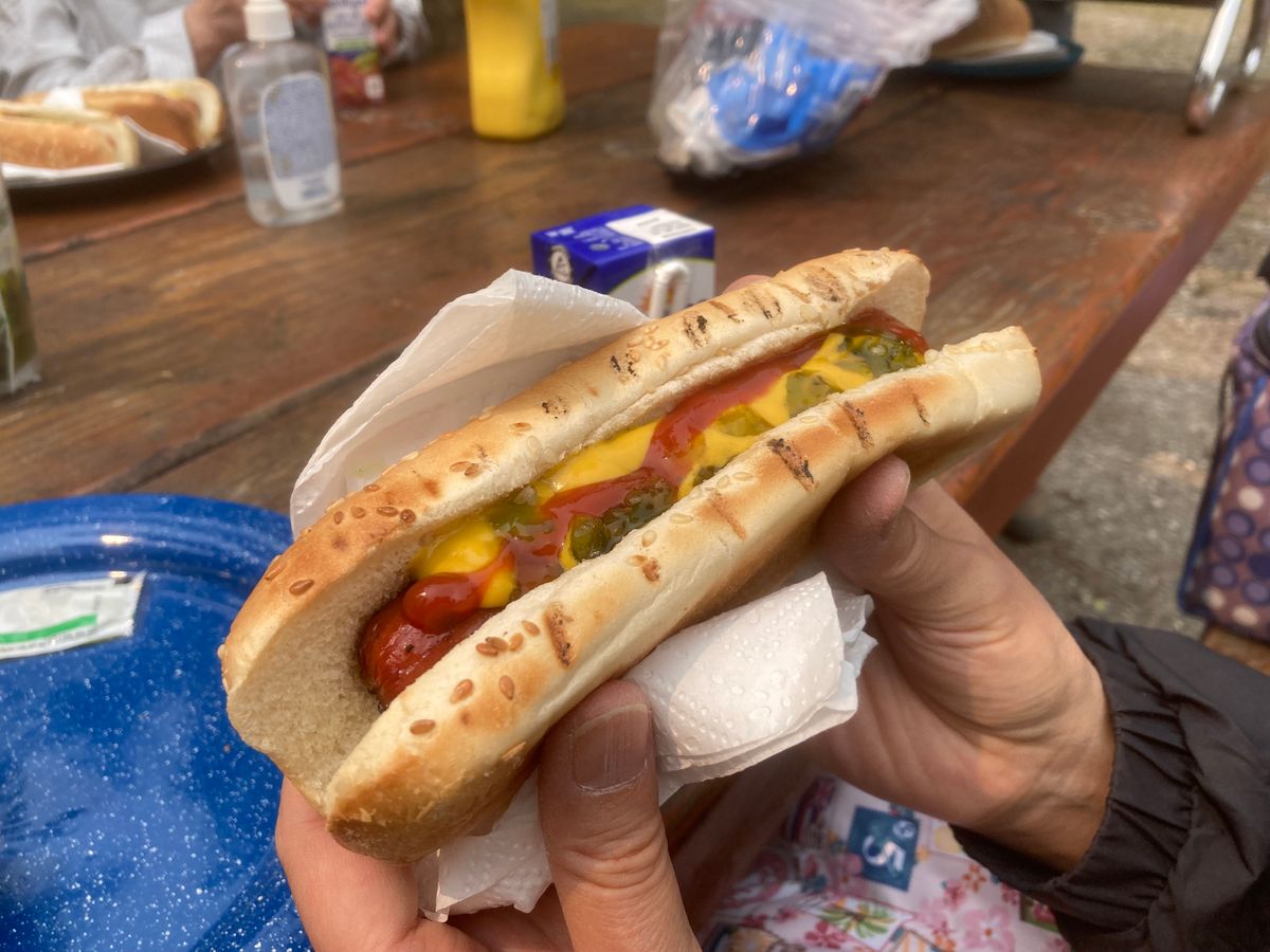 お昼のホットドッグも焼きたてで温かい食べ物はありがたかったです。ご馳走様でした。
