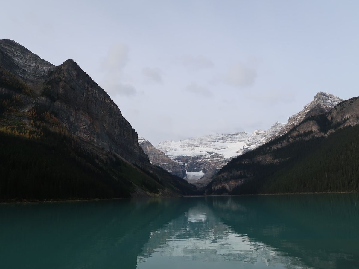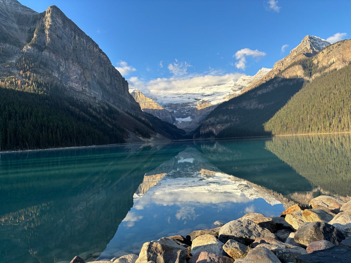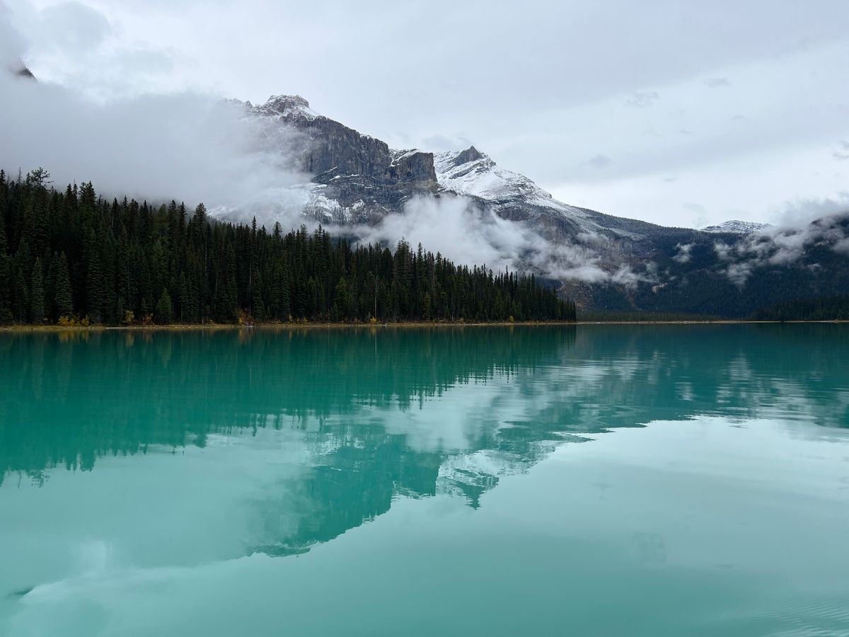 ロッキー山脈自然公園の連れ行ってくれる所とても綺麗で特に湖がコンディションがよく風がなく湖面が青くきれいに山々が反射していて最高でした。