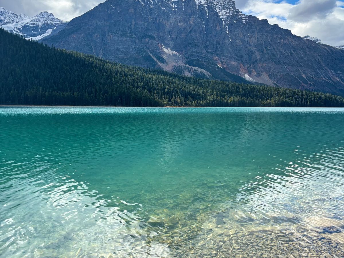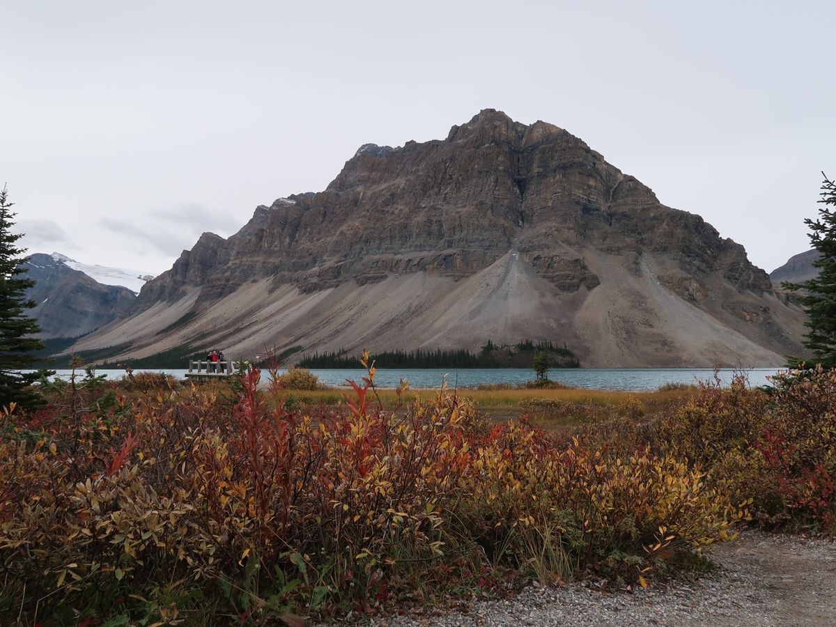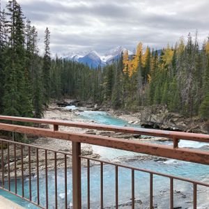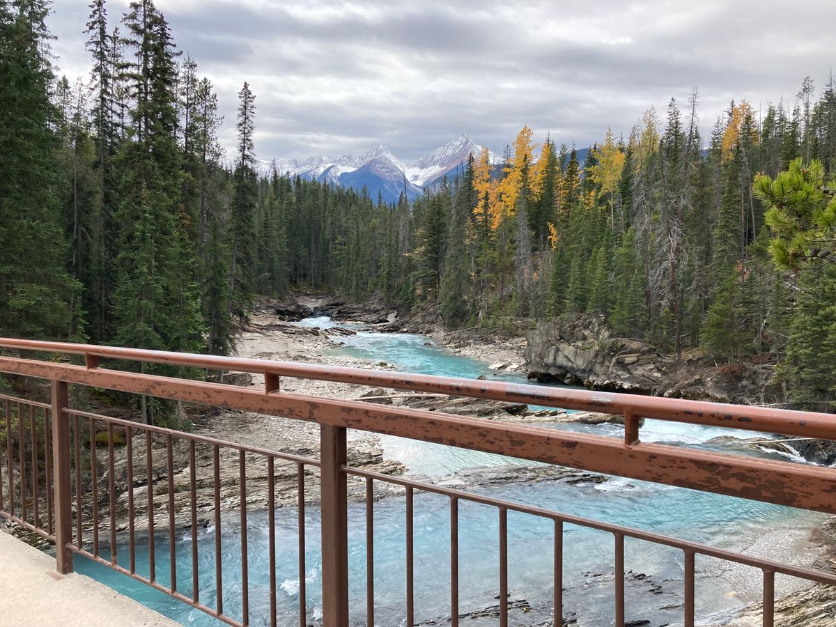 薄く雪化粧した複雑な断層で形作られた雄大な山々、薄いエメラルドグリーンの透き通ったボウ川、黄色く色付いた木々、目に入るもの全てが素敵な道程でした。特に山々が湖面に鏡のように映る光景は目を奪われる感動的なものでした。壮大なバンフ国立公園の魅力を堪能できる良いツアーだと思います。我々は2日間に分けてたくさんの湖や滝や氷河を回りましたが、体力のある方なら1日で回るのもアリだと思います。でも、例えばナチュラルブリッジは素晴らしいですが、2日間でないと行けないです。