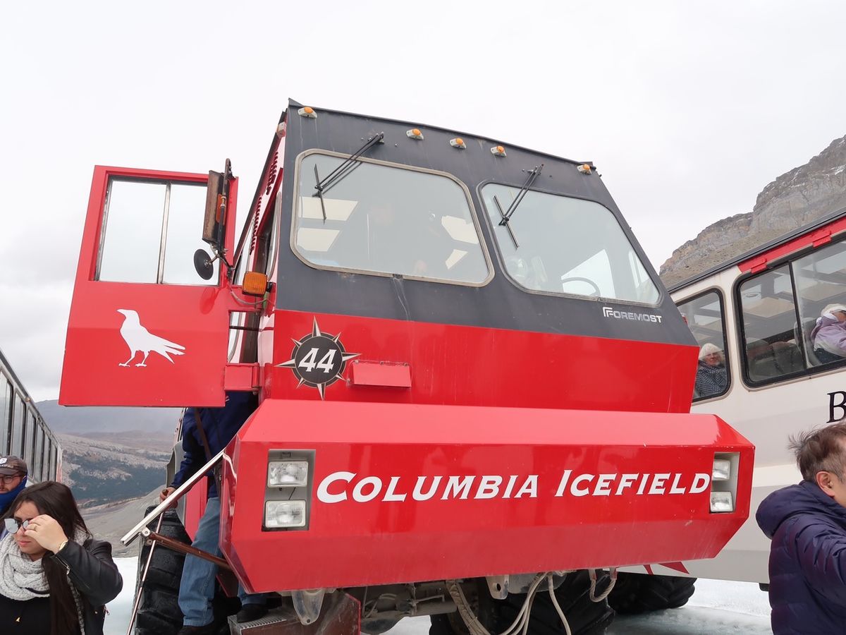 コロンビア大氷原の巨大雪上車は普段では乗れない大きさで貴重な体験でした。ただ地球温暖化の影響で氷河はかなり後退していました。
