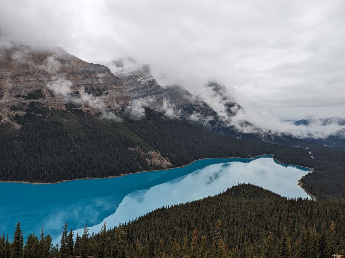 午後に到着した湖で初めて晴れ間が出た時には感動しました。