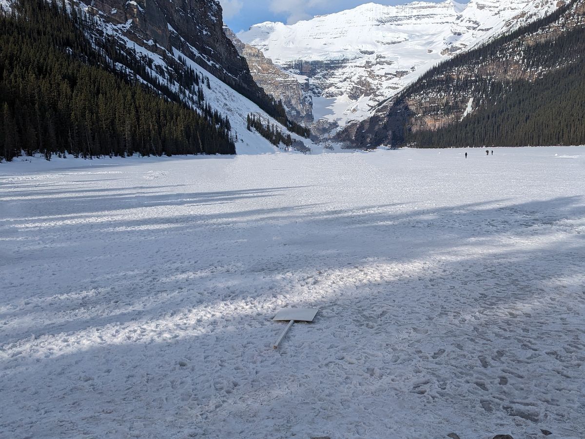 レイク・ルイーズは凍ってました!!なので、氷の上を歩くことができ、たっぷり楽しめました。駐車場も湖畔も混雑無し、この時期(5月初旬)に訪れて良かったと思いました。