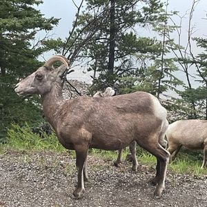 Cascade Mountainでは夕暮れ時の山々が美しく、列車が反射しとても綺麗でした。そこでBig horn sheepに会うことができ、とても近くで立派なツノが見えました!