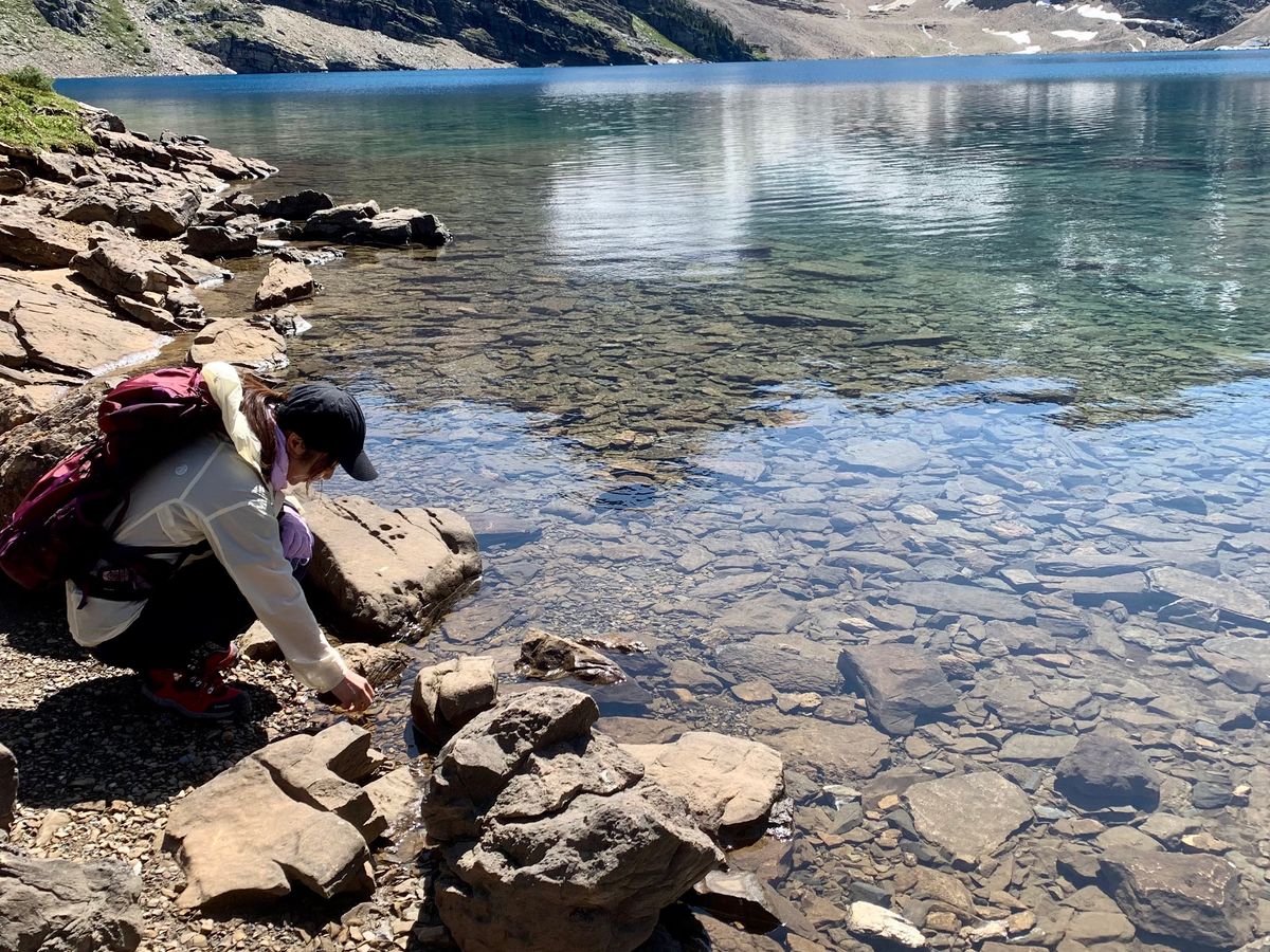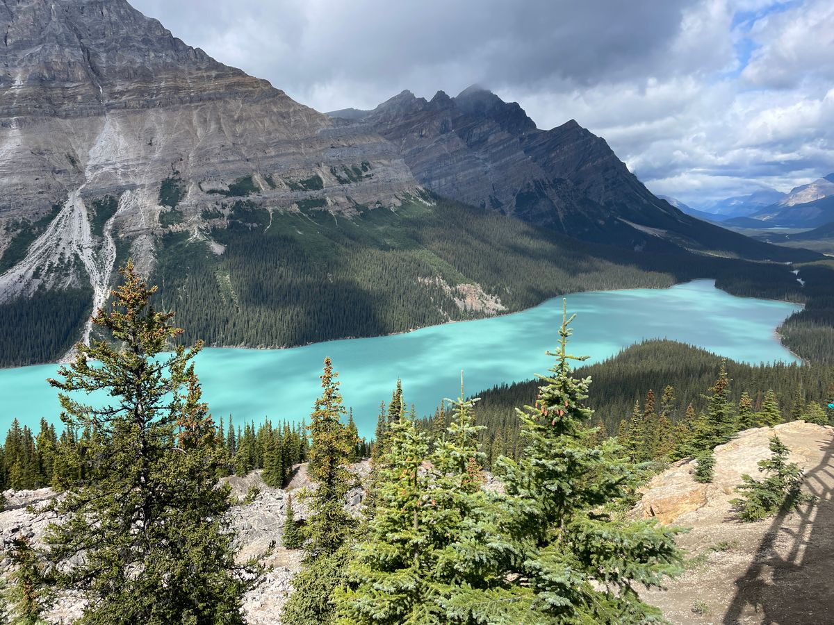ラーチ.バレーを抜けミネスティマ湖から見たテン.ピークスの眺めは、忘れられない光景でした。また、ミネスティマ湖でした水切りは、忘れられない思い出となりました。