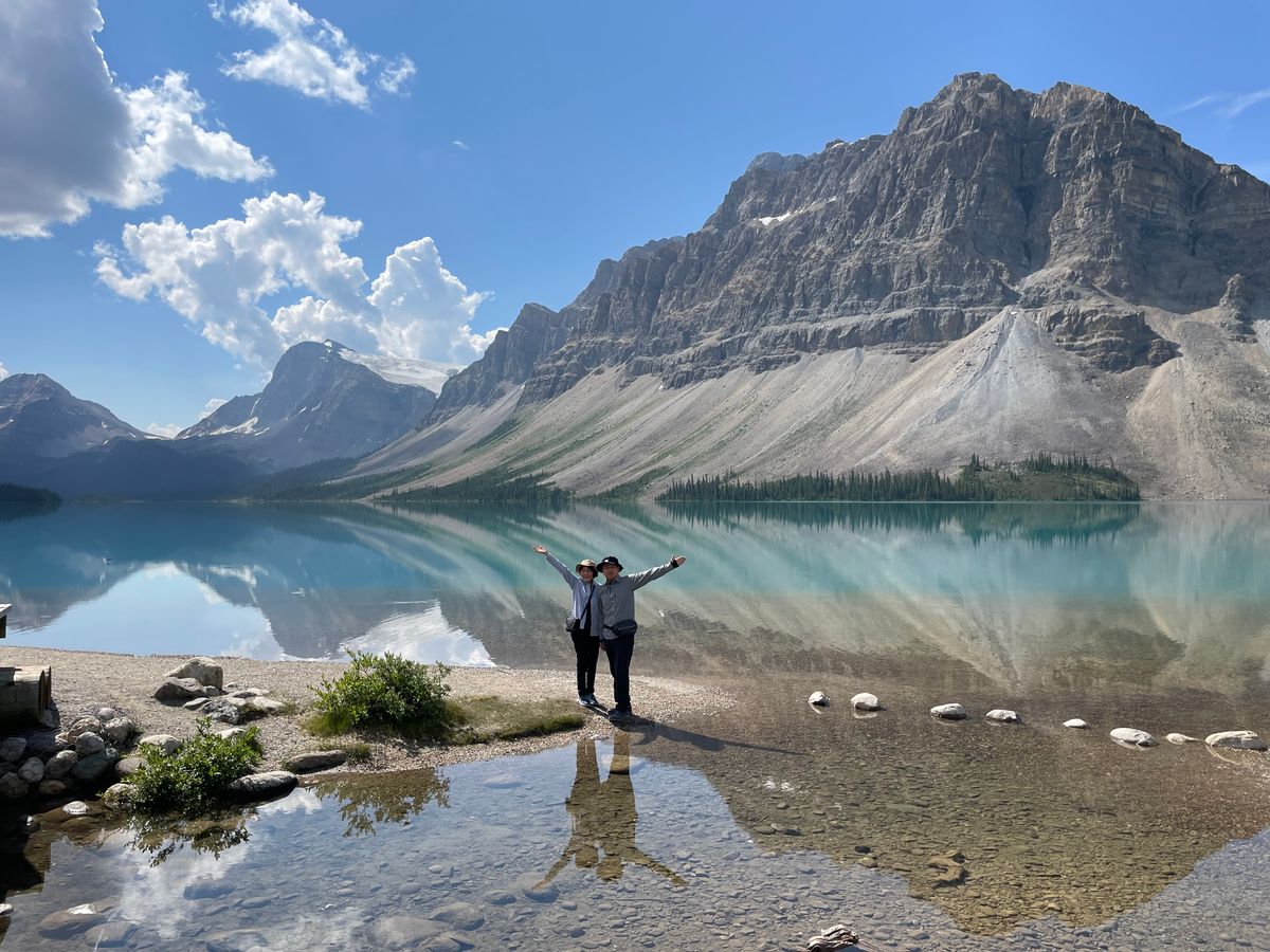 天候に恵まれ、湖はどこも美しさは想像以上、その神秘的な景色に感動の連続でした。圧倒的なスケールのコロンビア大氷原で溶けた水を飲んだこと、伝説の若返りを期待しています。山も川も心残る風景でした。安全運転とわかりやすいガイド、そして楽しいランチタイム、皆さんに心より御礼申し上げます。