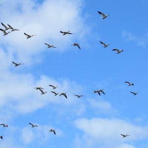 ピックアップしてもらうとすぐ、ハクガンが飛んで移動するのに出会いました。早速ハクガンの追跡です。出発したばかりにライフェル野鳥保護区に逆戻り。遠くの畑に降りたところを確認。何とか近くに行けないかと畑の中の道を走ってもらうと別の群れがいる畑を発見。観察・撮影していると何かに驚いたのか一斉に飛び立ちこちらにやって来るではありませんか。多くのハクガンが頭上を飛んでいく姿は圧巻でした。タクシーではこうはいきません。その後もハクトウワシの営巣している所やハイイロチュウヒ、コヨーテなどを観察することができました。こちらの希望通り車を走らせていただいたおかげだと思います。