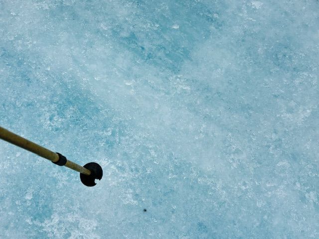 氷河は残雪の下に青い氷がチラッと顔を見せていて初めて観た氷河に感動!