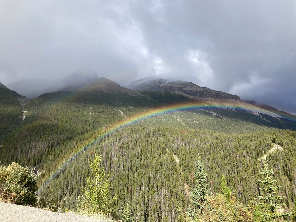 モレインレイク、レイク・ルイーズ、コロンビア大氷原、この3つが含まれているツアーを探していました。湖は5ヶ所回り、生憎の天気でしたが青々した水色は健在で、本当に美しい景色でした。コロンビア大氷原では天気が回復し、自然の壮大さに圧倒されました。ちなみに溶けた氷河の水を飲むこともできました。9月中旬に行きましたが、氷河付近は冷え込むのでダウンコートとマフラーを着て行きました。帰り際には山に大きな虹が掛かっており、最高の締めくくりとなりました。アテンドの舞希さんもとても良い方で、移動中にバンフのお土産やおすすめレストラン等を紹介してくれたり(オススメされたアルバータ牛のハンバーガーを夕食に食べに行きました!)写真を撮ってくれたりサポートしていただきました。朝の集合はちょっと早いですが、個人では行きずらい観光地を一日で巡れるので、効率よく回りたい方におすすめです。観光時間もちょうど良いと思います。ランチのサンドイッチは美味しいですが量は凄い多いわけでないので、お菓子など持参してもいいと思います。バンフの自然を堪能できました!本当にありがとうございました!