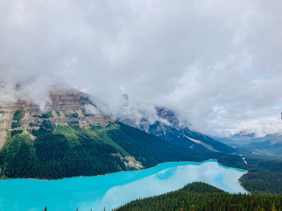 また、ツアー前半は天候が怪しかったですが、観光順序を調整してもらって、念願のボウ湖を青空をバックに見ることができました