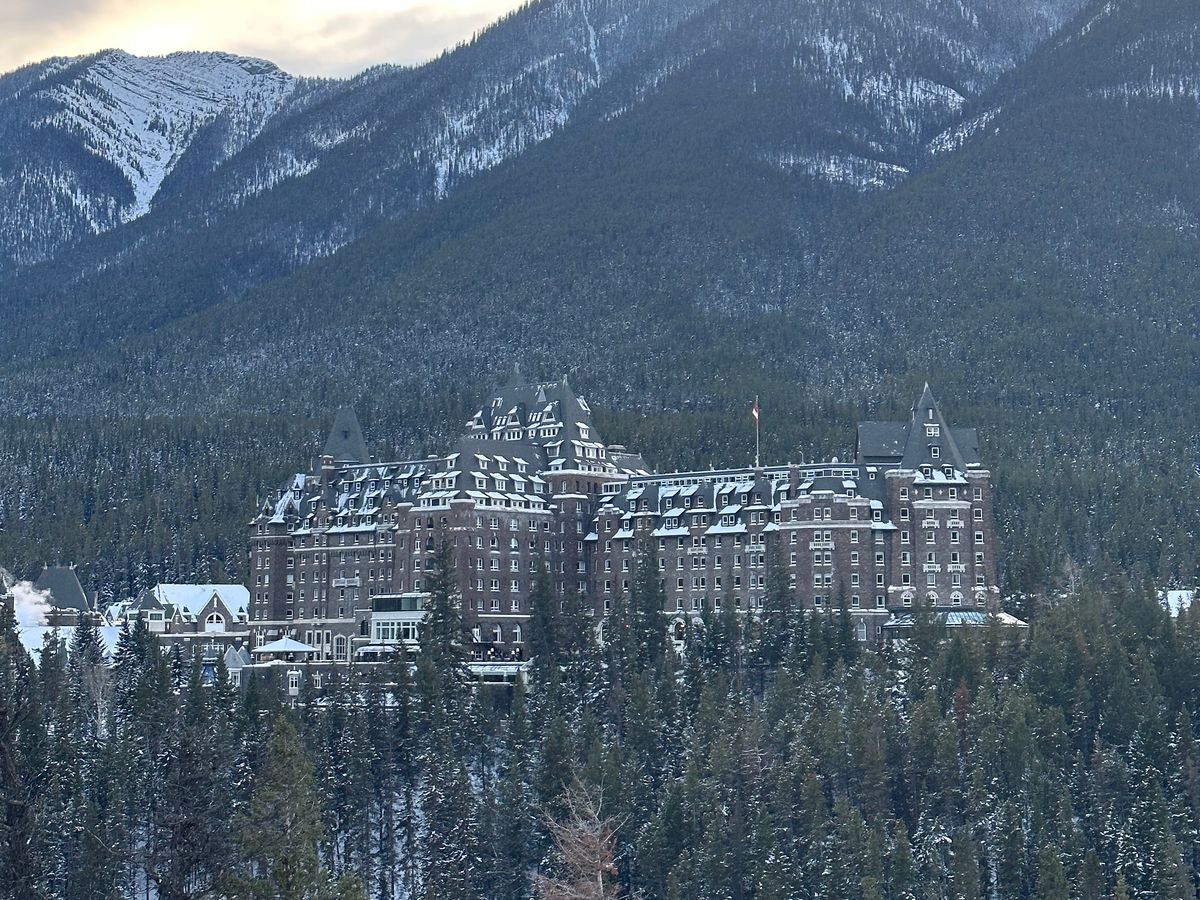 バンフは曇り、ルイーズレイクまでの道中は降雪、ホワイトアウトあり。北海道に暮らしたこともあるので、この程度は過去に体験済みでしたが、自分一人なら絶対出かけないお天気(^_^;)バンフの厳しい気象条件も体験できてよかったです。また、ガイドさんと雪国あるあるを共有できたり、カナダの事、観光地の歴史、バンフでの生活を伺ったり、レストラン情報も教えてもらい楽しかったです。英語のツアーだとあまり理解できずの私ですが、日本語でのコミュニケーションはやっぱり最高です。夕方にはようやく晴れ渡り、バンフ市街を取り巻く山々もきれいに見えて最高のツアーになりました。今度は、夏の天気のいい時に訪れたいです(笑い)