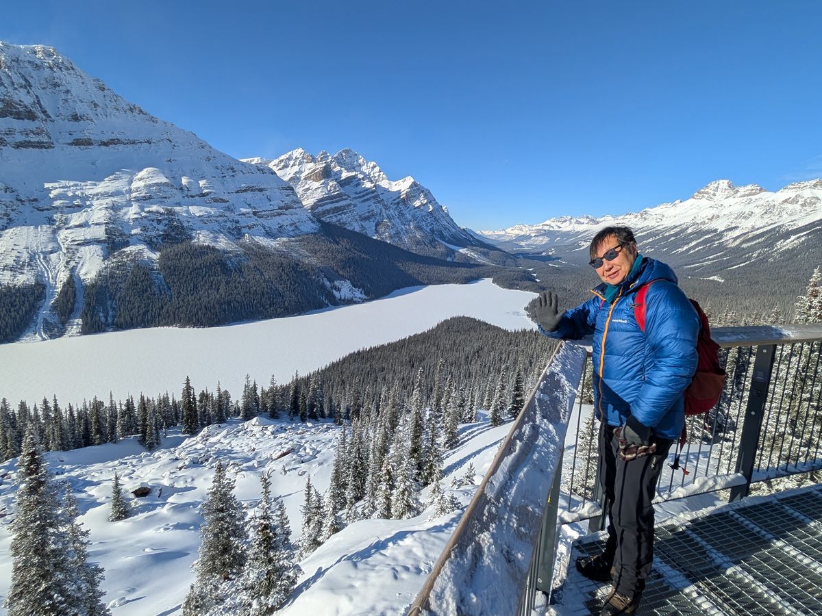 初めて訪れた街。朝の7時の気温が−27℃。冬のカナディアンロッキー観光に現地ツアーを選んだときは、一抹の不安がありました。しかし、バンフトップツアーズのマサオさんの気配りで忘れられない最高な観光となりました。青空に白い岩稜帯と氷上湖。息を呑む景色に魅了されてます。イエローナイフでのWorkingHoliday従事者と違って、その土地に長く住み押さえるべきポイントを網羅して歓待していただきました。感謝しか無い。ありがとうございました。
