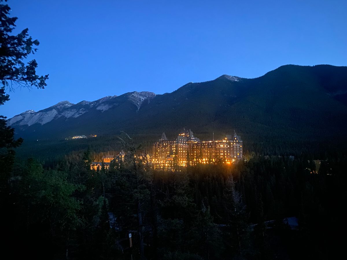 最初に見たフェアモント・バンフスプリングスホテルは、昼間に見ても美しい見た目だと思いますが、夜景ならではの幻想的な見た目がとても綺麗でした。また、ホテルが作られた際のエピソードや、ゴンドラのエピソードなどのお話も印象に残りました。