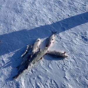 釣り上げられた魚はすぐに凍ります。