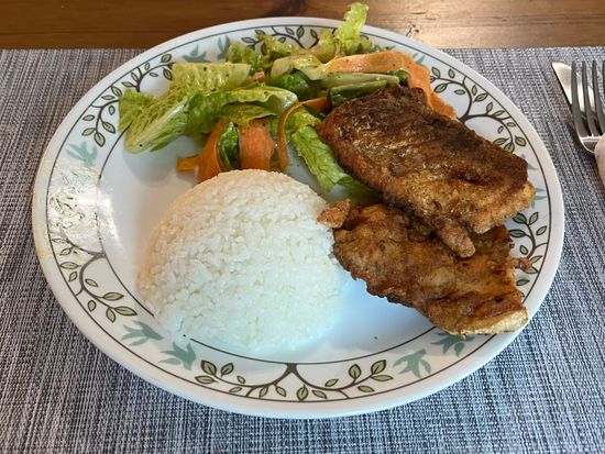 この日はオーブンとフライパンでじっくり焼き上げたフライ。外はカリッと、中はフワフワで香ばしくてとても美味しかったです。ライスも添えて頂き、日本人にはとても嬉しい組み合わせでした…ありがとう、シェフ。