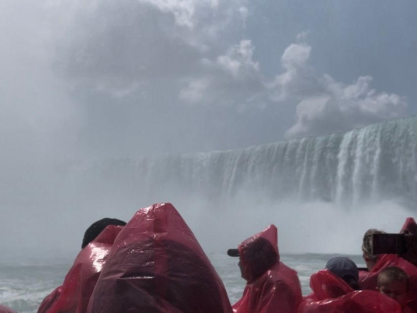 →ナイアガラシティクルーズ乗船(顔と膝から下が少しは濡れます。が、気候が良いのですぐ乾きます。濡れるのが気になる方はサンダルがお勧め)