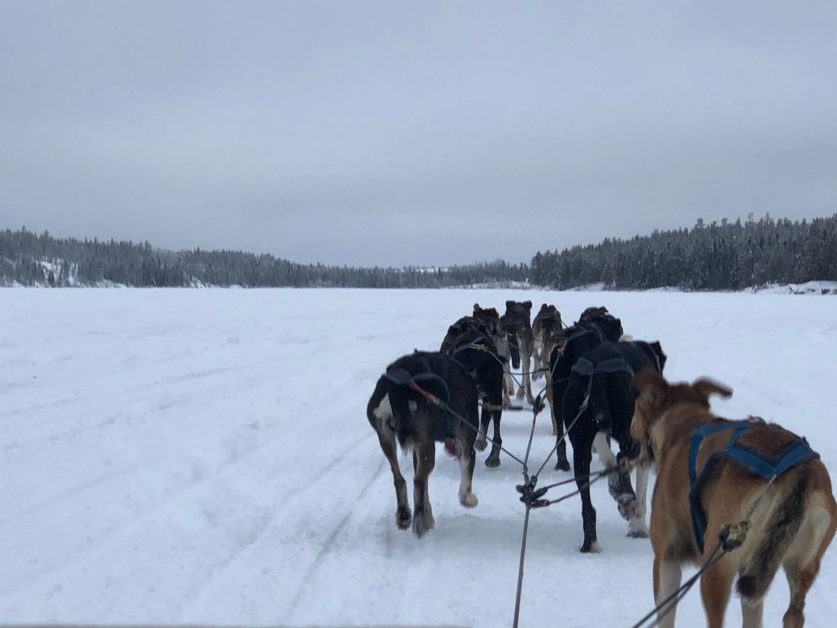 別料金になりますが、ホテルまで送迎付でしたし、犬ぞりは凍った湖の上を30分くらいかけて疾走します笑