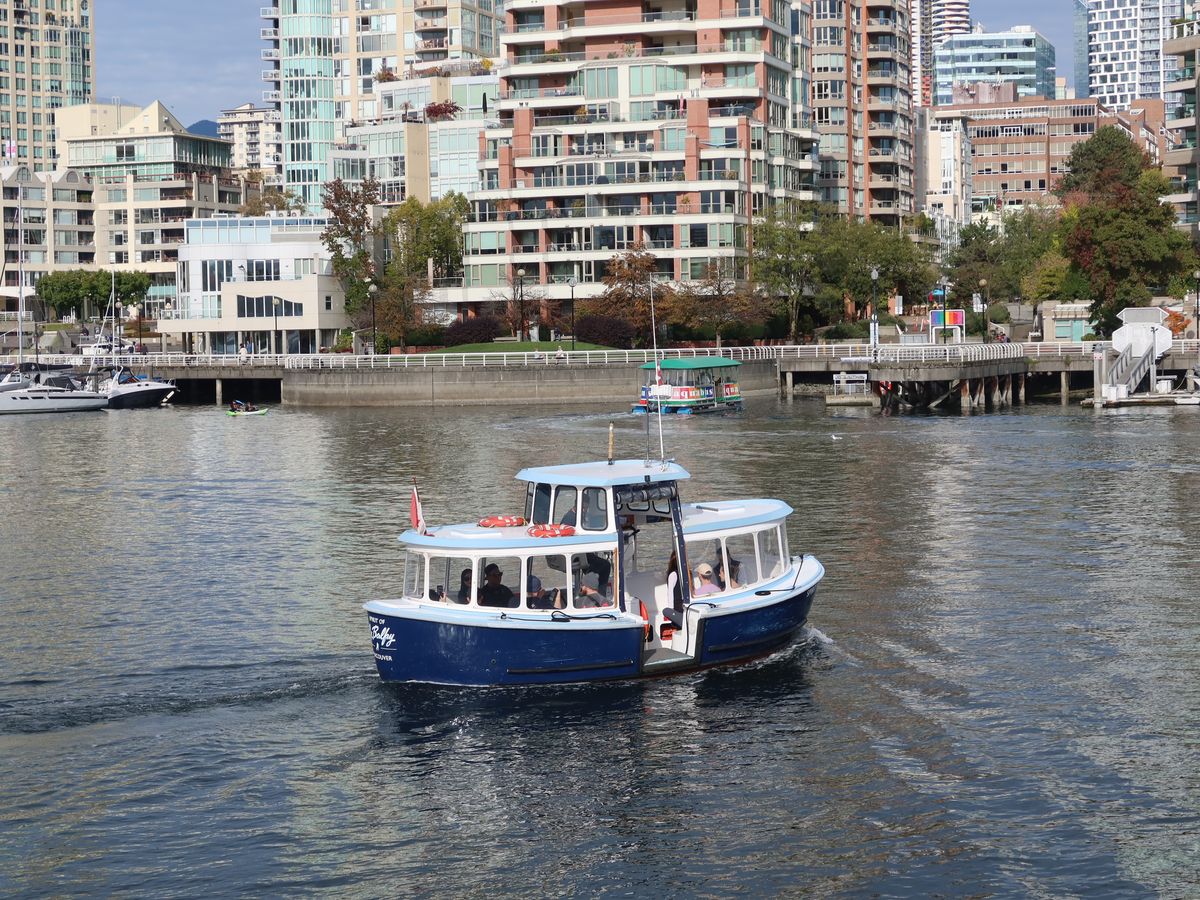 水上バスでは景色の良い特等席へさささっとご案内。ちょっとしたクイズを出していただきながらカナダ/バンクーバーのお勉強。