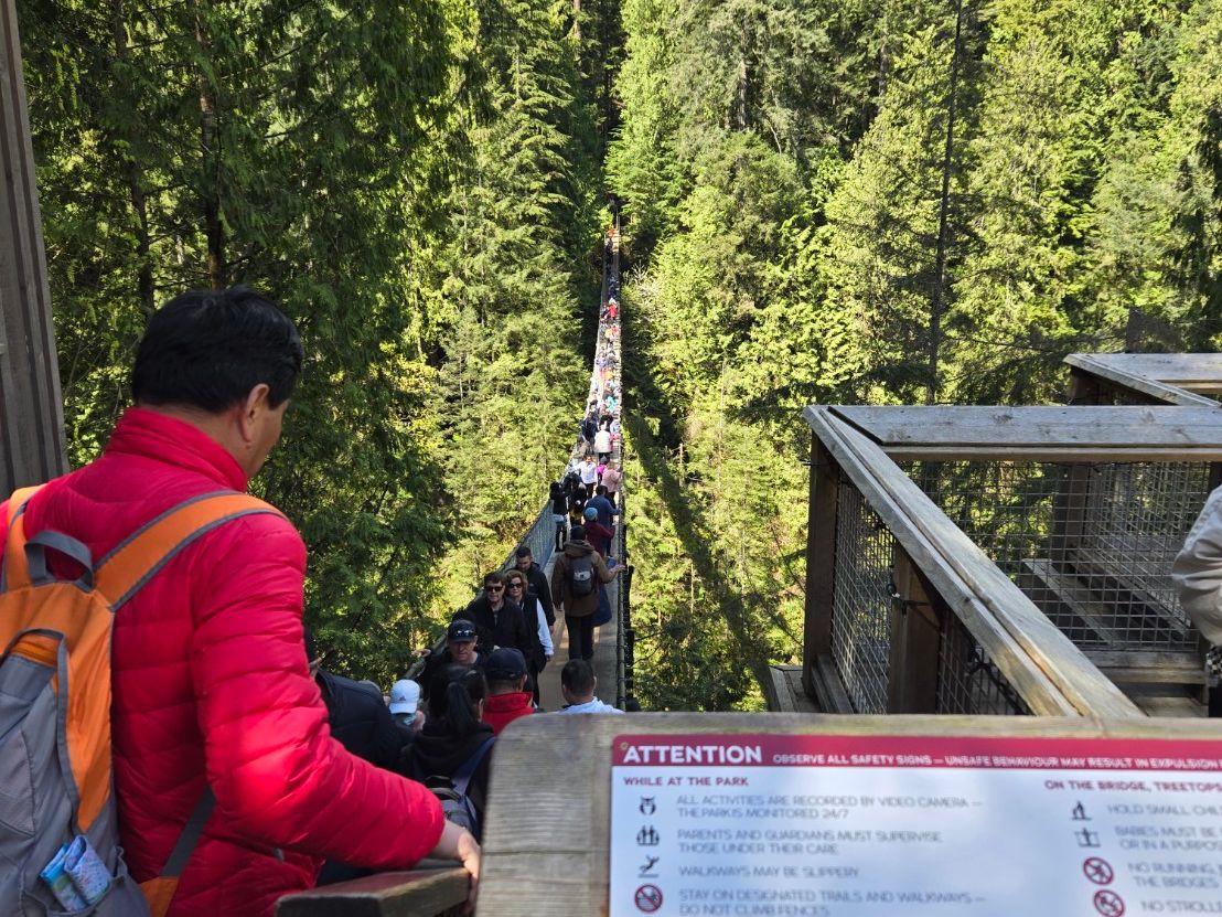 観光地をゆっくり周るのには時間が足りなく30分多めに時間をとって欲しかったです。飲食するにも並んでいたので時間を割いていました。クリフ・ウォークは10分ぐらいあれば全て周れますが、キャピラノ吊り橋は歩くコースが多い為、何かと時間がかかります。時間配分を考えて周ることをオススメします。