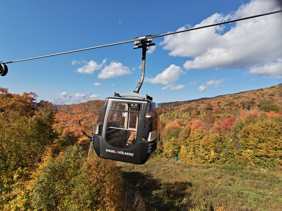 10/5のツアーでした。少し遅かったかな、紅葉終わってしまってないか、と心配でしたが、ギリギリ見られました。もう少し早かったら、色が鮮やかだったのかなとは思いましたが、天気にも恵まれ良かったです。リフトからの景色も、本当に素敵でした。