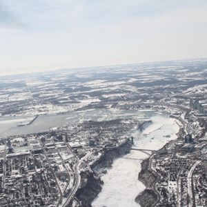 冬のナイアガラを上空から体験。真っ白な氷と流れ落ちる真っ青な滝とのコントラストが素晴らしい。完全に凍ったアメリカ滝の造形美もまた格別。冬季ならではの絶景を堪能しました。