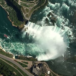 ヘリコプターに乗って上空からナイアガラ瀑布を見ました。