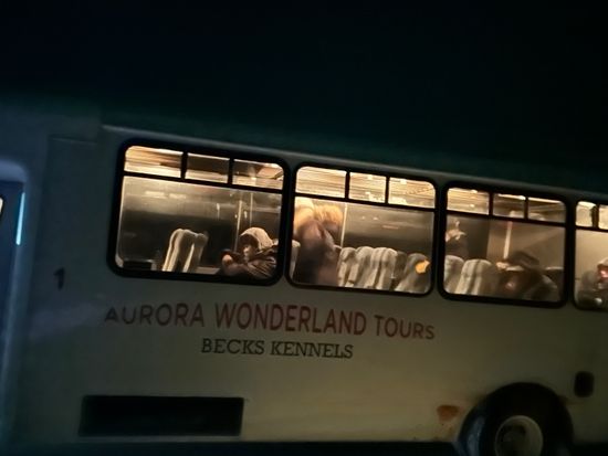 夜、ホテルのロビーでピックアップして、オーロラビレッジへ車で行きます。