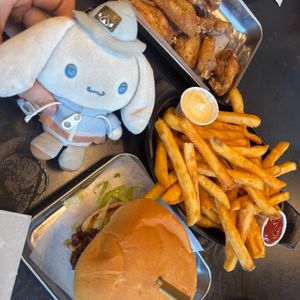 歩いて近くのお店に来店し、店内が見渡せるカウンターに着席しました。カナダのクラフトビールを飲んでみたかったので4種飲み比べセットとプーティンを注文しました。