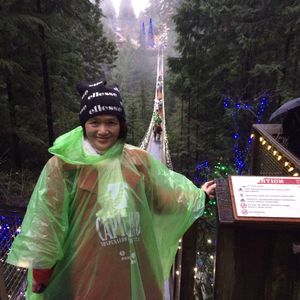 初めてのバンクーバー旅行でした。この時期、雨が多いことは覚悟の上で旅行を決めましたが本当に毎日雨でした。でも弱い雨が多く、風もなく、気温も低くないので、結構快適に過ごすことができました。キャピラノ吊り橋へは12月のイルミネーションを期待して申込みをしました。特にこの日は雨が本降りでしたが、もう雨にも慣れてそんなことを気にするでもなく、夕暮れのイルミネーションを満喫することができました。園内には吊り橋が数多くあり、天気が良ければすべて渡り歩きたいくらいでしたが今回は半分くらいにしておきました。現地ガイドの石川さんにはバンクーバー全般について詳しく話を聞かせて頂き大変参考になりました。お世話になりました。