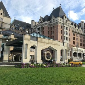 食事付きのコースにしましたが正解でした。伝統あるエンプレスホテルは館内も庭も美しく調度品も素敵でした。トイレに暖炉やカウチもあり広くてびっくりでした。食事もとても美味しかったです。サーモンがふっくら焼けておりとても美味しかったです。食事をしたので散策をする時間は1時間ほどになりましたが、ガイドさんに頂いた地図を頼りに街並みを楽しむことができました。ロジャーズチョコは行ってみたいお店でした。小さく可愛いお店で観光客で賑わっていました。どのチョコも可愛く見るだけでも楽しいです。自分用とお土産用に購入しました。