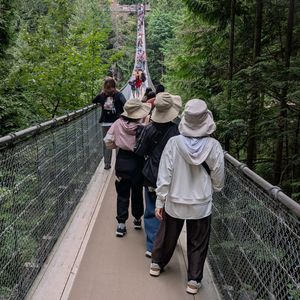 ノースバンクーバーのキャピラノ吊り橋に行きたくて申し込みました。最初ノースバンクーバーに着いた時は雨が降っていて少し寒かったですが、ガイドさんがとても明るい方で常に前向きな言葉をかけてくださったので、私も楽しく参加できました。私は1人で参加したのですが、同日の他の参加者の方々とも交流が出来たのが楽しかったです。移動もありましたが、その間も会話を楽しめました。キャピラノ吊り橋に着く頃には雨もやみ、景色も楽しめました。繁忙期は2時間くらい並ぶところを、雨季に入りかけている今の時期ではすんなり渡れるとのことを聞いて、私自身としては雨が若干降っているけど空いている時期に来れてよかったと思いました。午後はマーケットでご飯を食べたり、お土産をたくさん買うことができました。朝から夕方まで、バンクーバーを満喫できるツアーです。