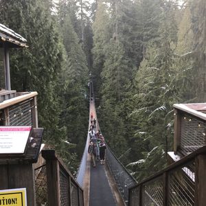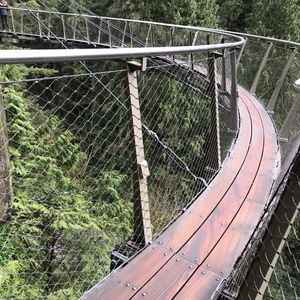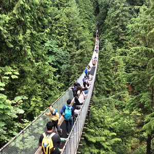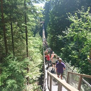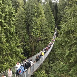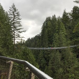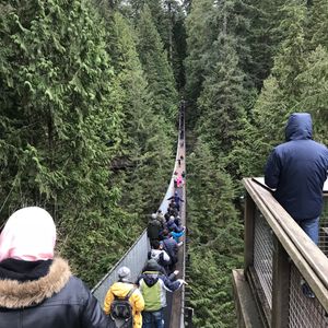 キャピラノ吊橋では、針葉樹林の中、深い渓谷に架けられた長い吊橋や遊歩道を巡り、自然を満喫することができました。
