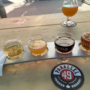 5年前にバンクーバーに来た時には、荒木さんのパブツアーに参加させていただいたのですが、まだ今回参加したブリュワリーツアーというのはなく、どこがどう違うのか、気になって今回、両方申し込みました。結果、全然違うということが分かりました。パブツアーは、ウォーターフロント駅から徒歩圏内のパブ1軒が目安ですが、ブリュワリーツアーは、路線バスで20分くらいの街はずれの工場地帯に行きます。まず普通の観光客が行くようなところではなく、地元の人たちが仕事帰りとか犬の散歩の途中とかに立ち寄ってビールを楽しむような小さなブリュワリーがたくさんあり、しかもどこも結構混んでいました。まず1軒目は、キッチンカーで軽食もできるお店に入り、4種の飲み比べセットとマルゲリータのピザをいただきました。ガラス越しにビール工場のタンクが見える中でのビールと軽食、そして荒木さんとの弾んだ会話、コロナ禍の3年間、日本人旅行者を相手にしていた現地の旅行業者さんはどうしていたのかとても気になっていたので、そういったお話も聞けて良かったです。Veltraのサイトでパブツアーを見つけた時、持ちこたえてくれたんだ、と嬉しくなりました。本当に大変だったと思います。2件目は、いわゆるマイクロブリュワリーといわれる小さなブリュワリーで、そのブリュワリーに行かないとそこでのビールは飲めないということで、とても貴重な経験ができました。ここでも4種の飲み比べセットを飲みました。そして3件目は、そのすぐ斜め向かいくらいにあるこちらも小さなブリュワリーで、さすがに2件で飲み比べセットで8杯ビールを飲んでお腹がタップタップでしたので、荒木さんが「冒険する」とおっしゃって頼んだゆずのビールを一番小さいグラスで頼みました。ゆずのビールは、私の感覚では、シャンディガフに近いような気がしました。3軒、ブリュワリーを飲み歩きましたが、荒木さんから、「まだまだたくさん知っているので、次に来るときにはまた別のところに行きましょう」と言われたので、次にバンクーバーに行った時にもまた参加したいと思いました。また、もしビールが一番好きでしたら、パブツアーかブリュワリーツアーかどちらか一つを選ばなければならないのでしたら、絶対にブリュワリーツアーをお勧めします。両方行ければそれが一番いいですが(笑)。