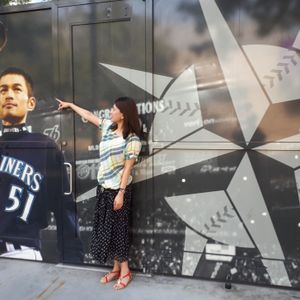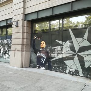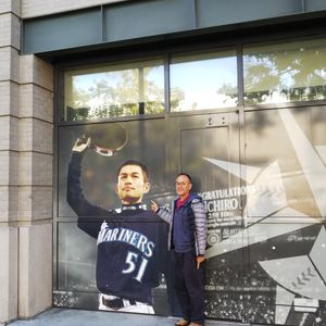 移動途中でセーフコフィールドに立ち寄り、降りて現地の写真を撮りました。壁画写真には若かりし頃のイチローが!!