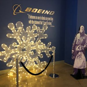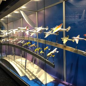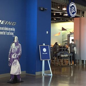 その後ボーイング社へ向かい、工場内ツアーまではまずフリーでパブリックスペースの見学。屋上ではタイミング良くテスト飛行も見れました!