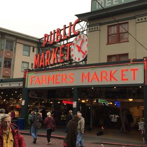 スタバ1号店があるパブリックマーケットへ。自由行動・昼食を楽しみました。