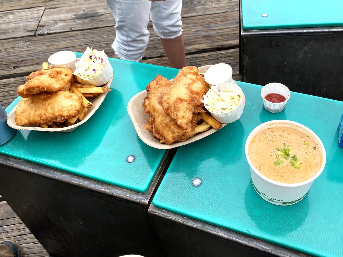 ビクトリアハーバーで有名なフィッシュアンドチップスにありつきました。1時間並びましたが、とても大きくておいしかったです。