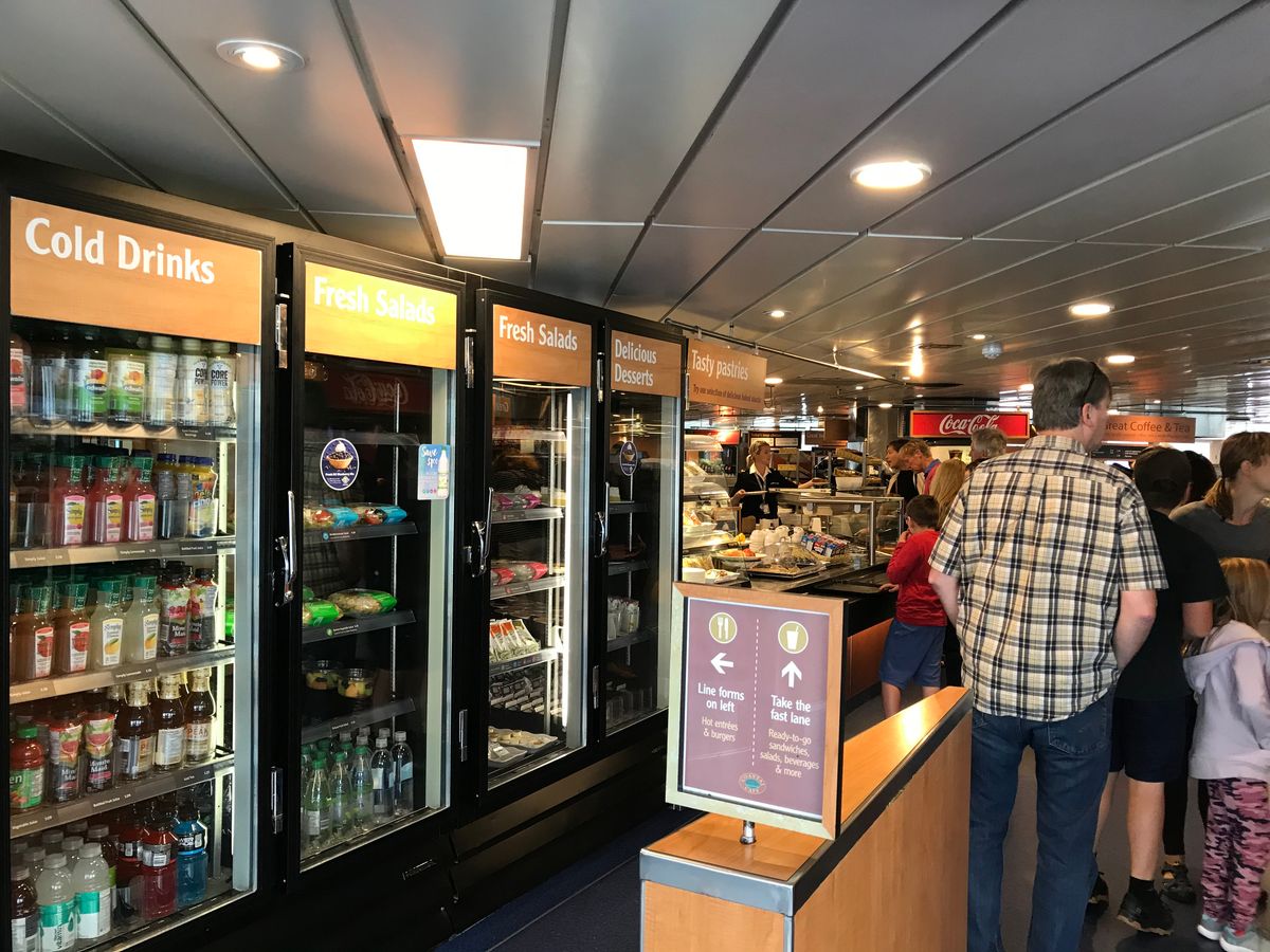 ホテルフェアモントエンプレスの裏手の通りの道路を渡ったところに乗り場とチケットセンターがあります。バスは快適で、港に着くと乗船待ちの車列を横目にフェリー内の駐車場のいわゆるポールポジションに駐車(出るとき一番に出られる)。さすがフェリー会社のバスです。フェリーは出航したのもわからないくらい揺れもなかったです。船内には売店や食堂が完備してしていて快適です。くれぐれもバスに遅れずに戻ってください。また利用したと思います。