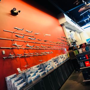 その後ボーイング社へ向かい、工場内ツアーまではまずフリーでパブリックスペースの見学。屋上ではタイミング良くテスト飛行も見れました!