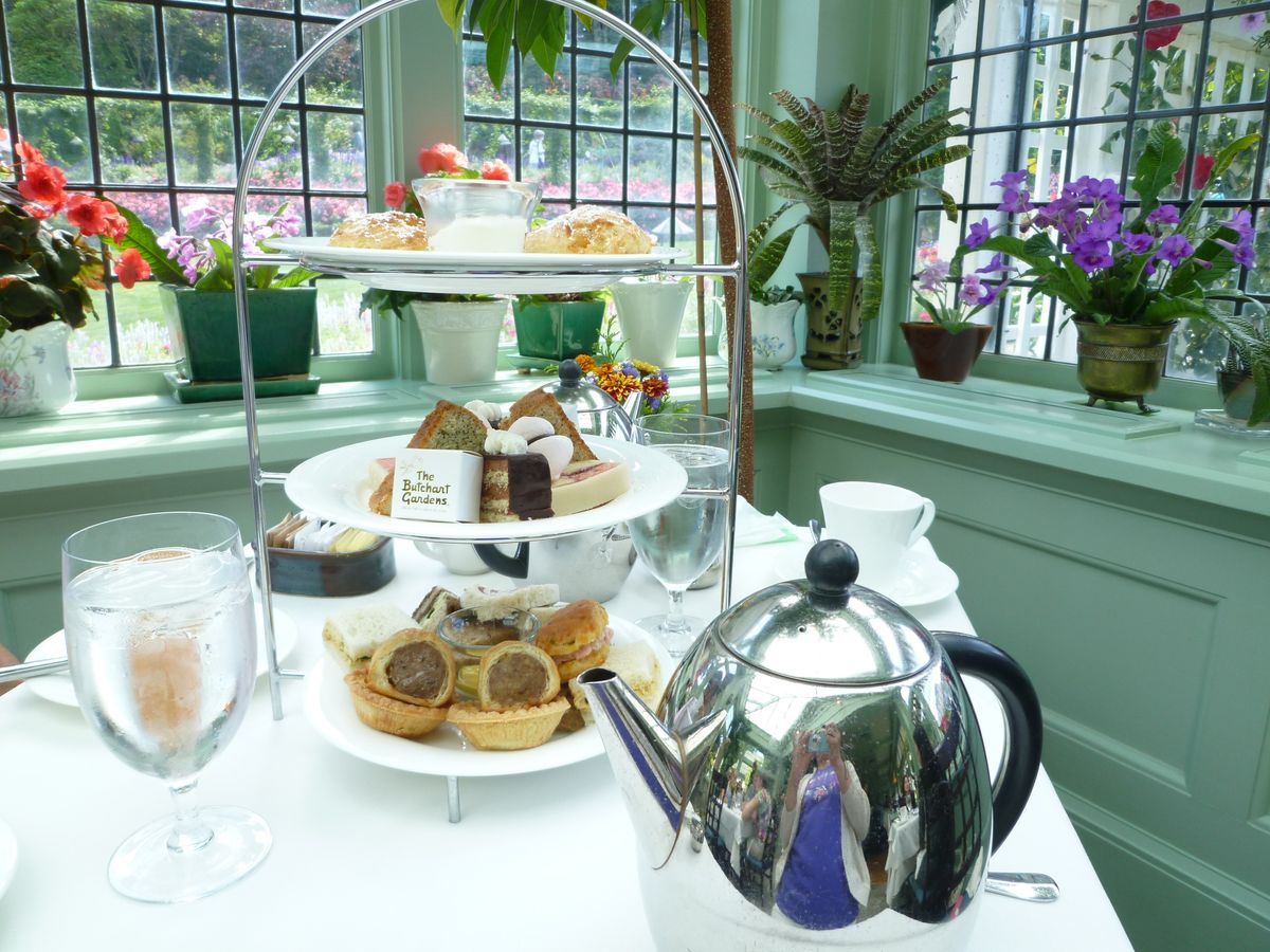 ブッチャードガーデンのレストランでアフタヌーンティーを予約して、美味しく頂いた。結構他より安くて、花を見ながら楽しんだ。しっかり、余ったケーキはお持ち帰りにしました。