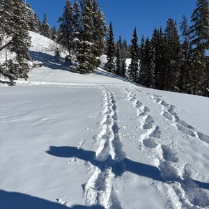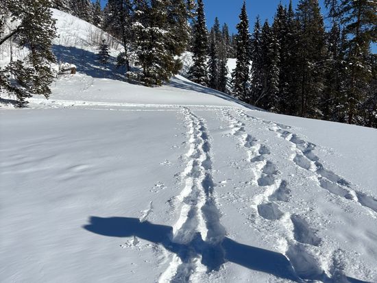 ガイドさん含め4名でのスノーシュー。他のグループも無し。トレイル外に多くの新雪が残っていて大変楽しめました。
