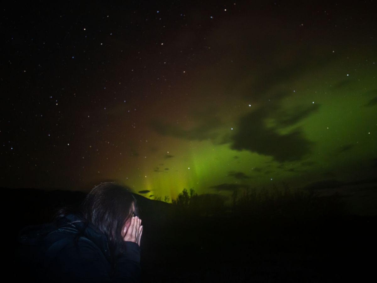 私は3日全てオーロラ見れました。頭上を大きく舞うもの、遠くにうっすらみえるもの、薄いグリーンに光るもの。どれもが同じでなく、オーロラの様々な顔を観れた気がします。