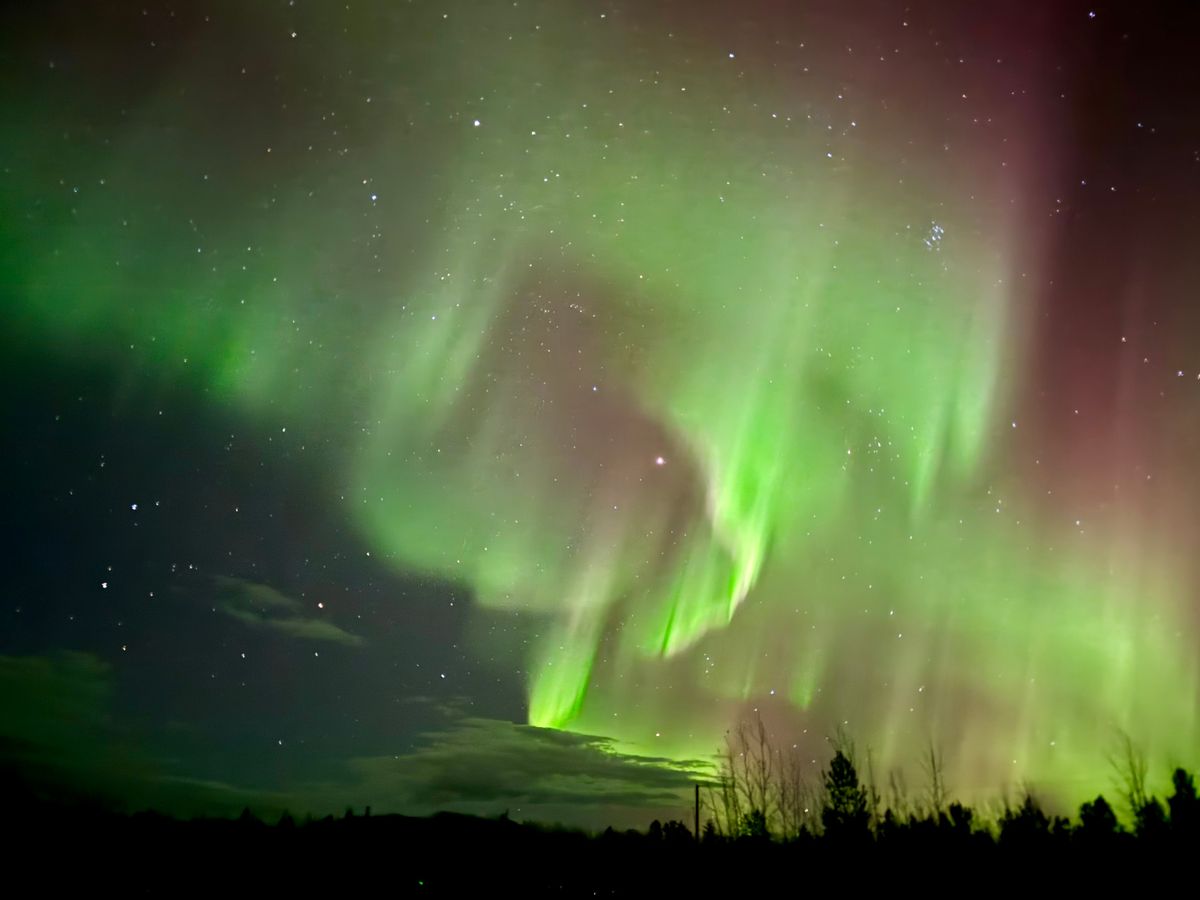 オーロラは、その日の強さや大きさよっては、肉眼で見えないこともございますが、いただいたお写真では鮮やかな緑色が出ていますね。