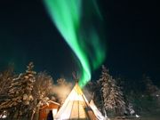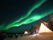 到着した日の参加でとても大きなオーロラを見ることができ感無量。 人生で一度は見たいと思っていたが二度でも三度でもいい。 待機小屋は暖かく飲み物も用意されているので快適にオーロラを待つことができる。