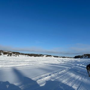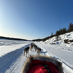 真っ白な雪原(凍った湖の上です)を5,6匹のわんちゃんに引かれてとても気持ちよかったです。