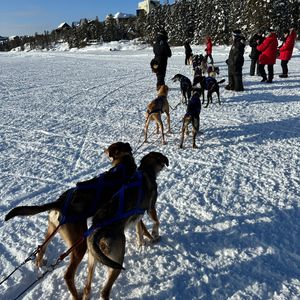 迎えのバスが30分近く遅れて来ました。連絡もなかったです。そりは7人がぎゅうぎゅう詰めでした。コースは凍った湖の上(平坦)で景色がほぼ変わらず単調な感じがしました。犬と触れ合える時間はそりから降りて、次に出発する人たちの準備が完了するまでだったと思います。あまり長くないです。犬ぞりは初体験で楽しみにしていたのですが、30分の体験で充分だと思いました。