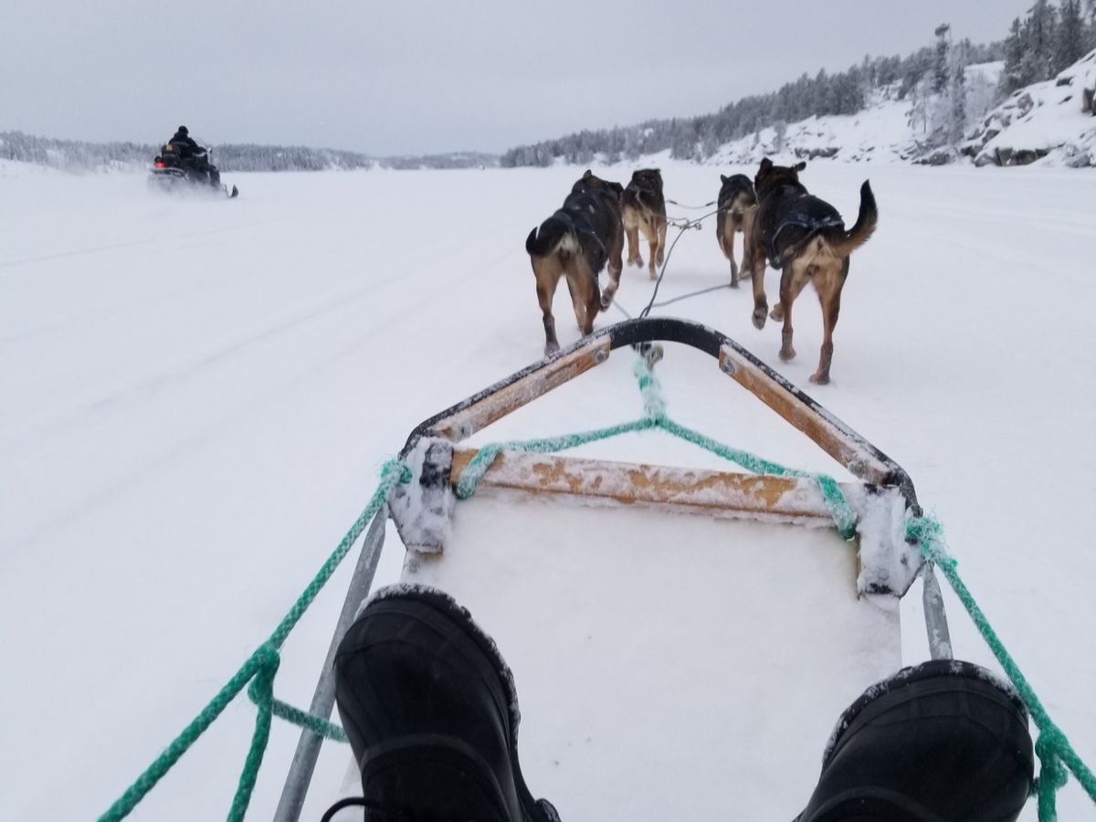 別料金になりますが、ホテルまで送迎付でしたし、犬ぞりは凍った湖の上を30分くらいかけて疾走します笑