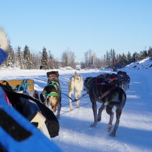 犬ぞりには、2人1組で臨みます。1人がソリの上に立ち、1人がソリの中に座る感じです。犬は1組につき4匹繋がれてます。操縦体験とありますが、操縦するのは「ソリに立っている人だけ(つまり、2人いれば1人だけ)」であり、もう1人は座ってるだけです(途中で交代するので、15分操縦という感じです)。ただ、正直座ってた方が楽だったような気がします。この時期のイエローナイフの気温は、氷点下20度前後ですので、犬ぞりのスピードも勘案すると、体感温度は凄まじく冷たく感じると思います。そういう意味では、1時間は厳しいです。また、操縦と言っても、雪の道ができているので、犬が勝手にそれに沿って走ってくれるので、ソリの向きを多少変えたり、ブレーキを踏んで止まる程度です(操作はすべて足でやります)。ややイメージと違ったのでマイナス1しましたが、ガイドの方も英語でしたが丁寧に教えて下さり、良い写真も撮って下さったので、☆4としました。最後に、犬と触れ合う時間は殆どありません。元々ツアーにも触れ合えるとは書いてありませんでしたので、触れ合う時間がとれたらラッキー程度に考えた方が良いかもしれません。私は、犬の頭を少し撫でて時間がきてしまいました。