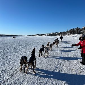 天気も快晴で凍った湖を滑走とてもエキサイティングな経験でした 終了後引いてくれた犬たちと一緒に写真を撮りました